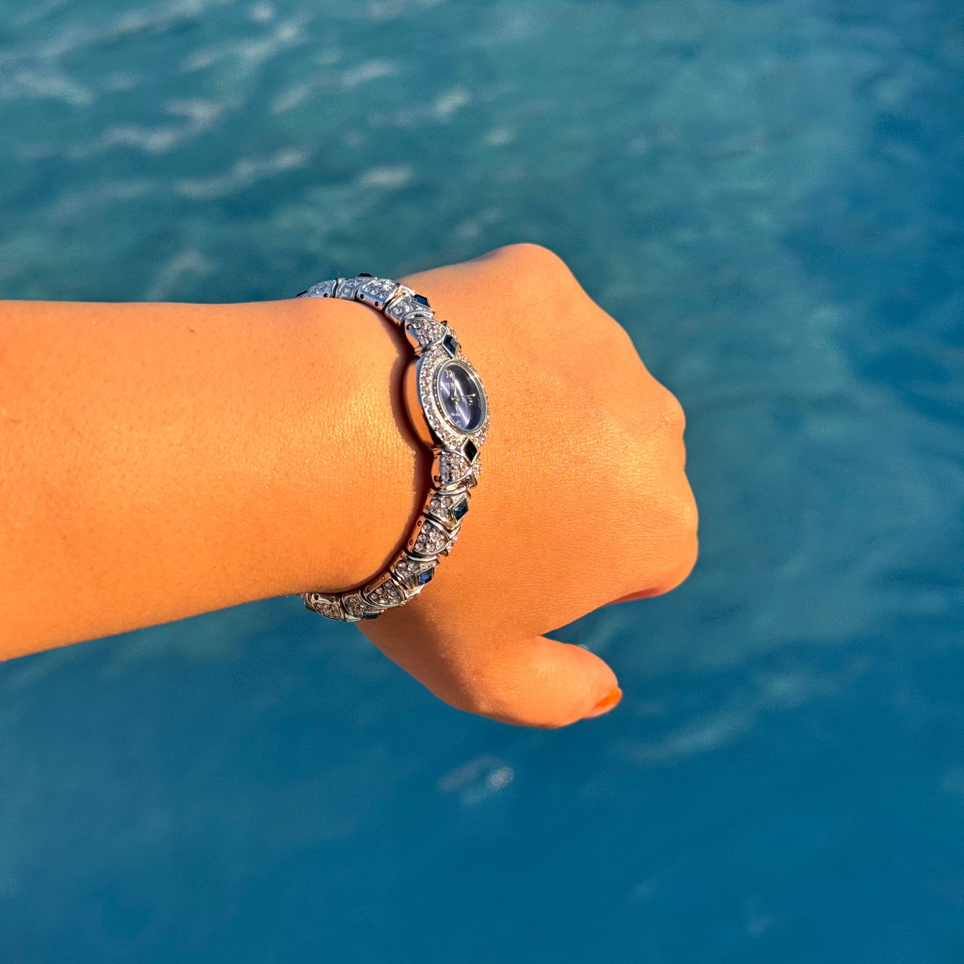 Vintage Joan Rivers Collection White and Blue Crystal Watch